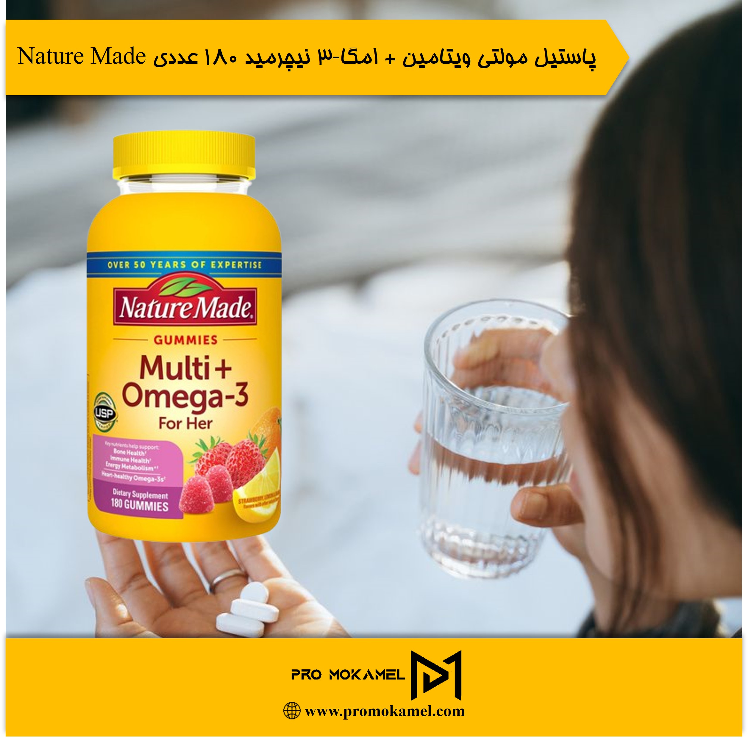 پاستیل مولتی‌ ویتامین + امگا‑3 نیچرمید 180 عددی Nature Made