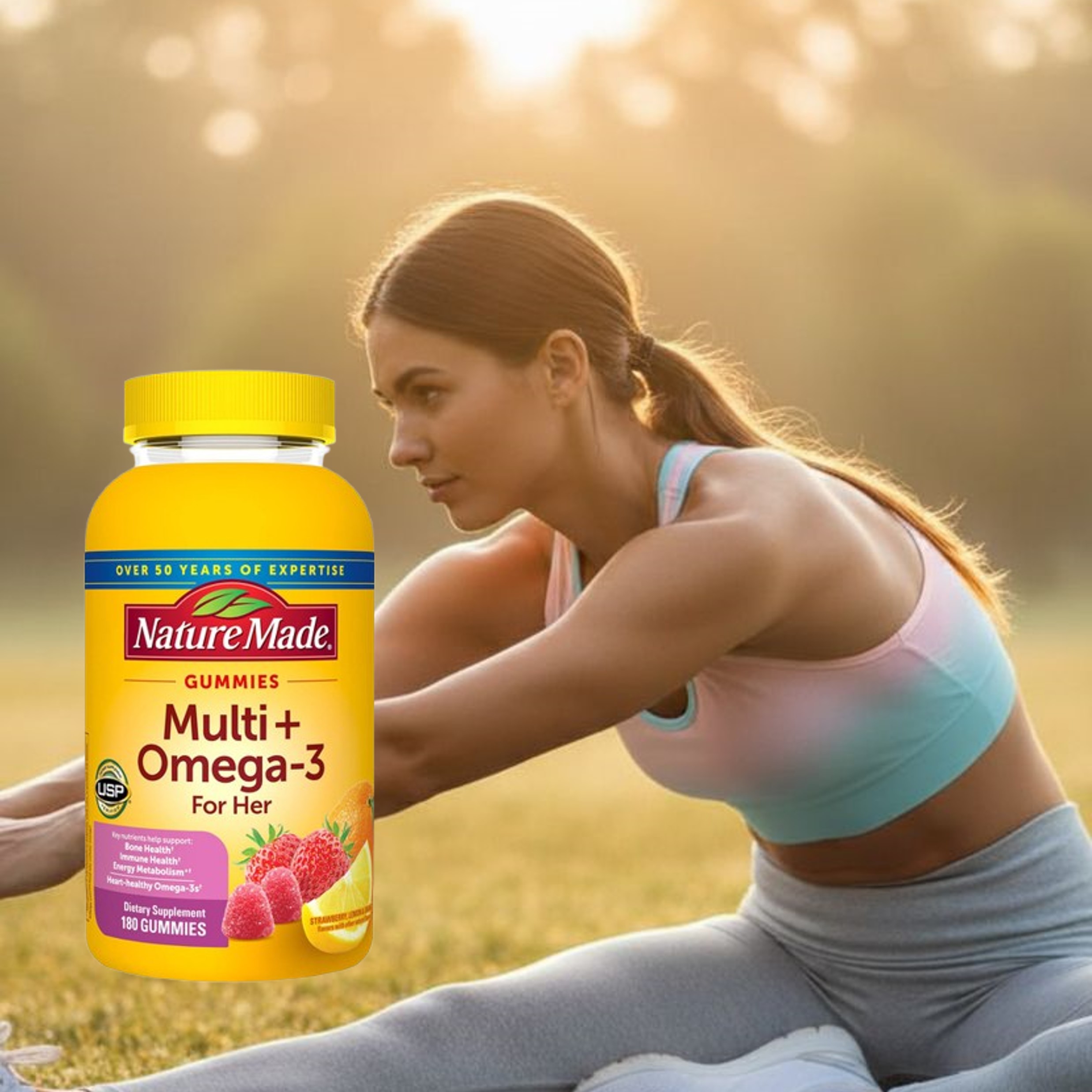مکمل Nature Made Multi + Omega-3 Gummies ترکیبی هوشمندانه از ویتامین‌های ضروری و امگا-۳ می‌باشد که برای کسانی که به دنبال یک مکمل همه‌کاره، طعم‌دار و مؤثر هستند، بسیار مناسب است. این محصول با تأمین همزمان ویتامین‌ها و اسیدهای چرب ضروری، می‌تواند بخشی از یک سبک زندگی سالم باشد و به پر کردن خلاهای تغذیه‌ای کمک کند.