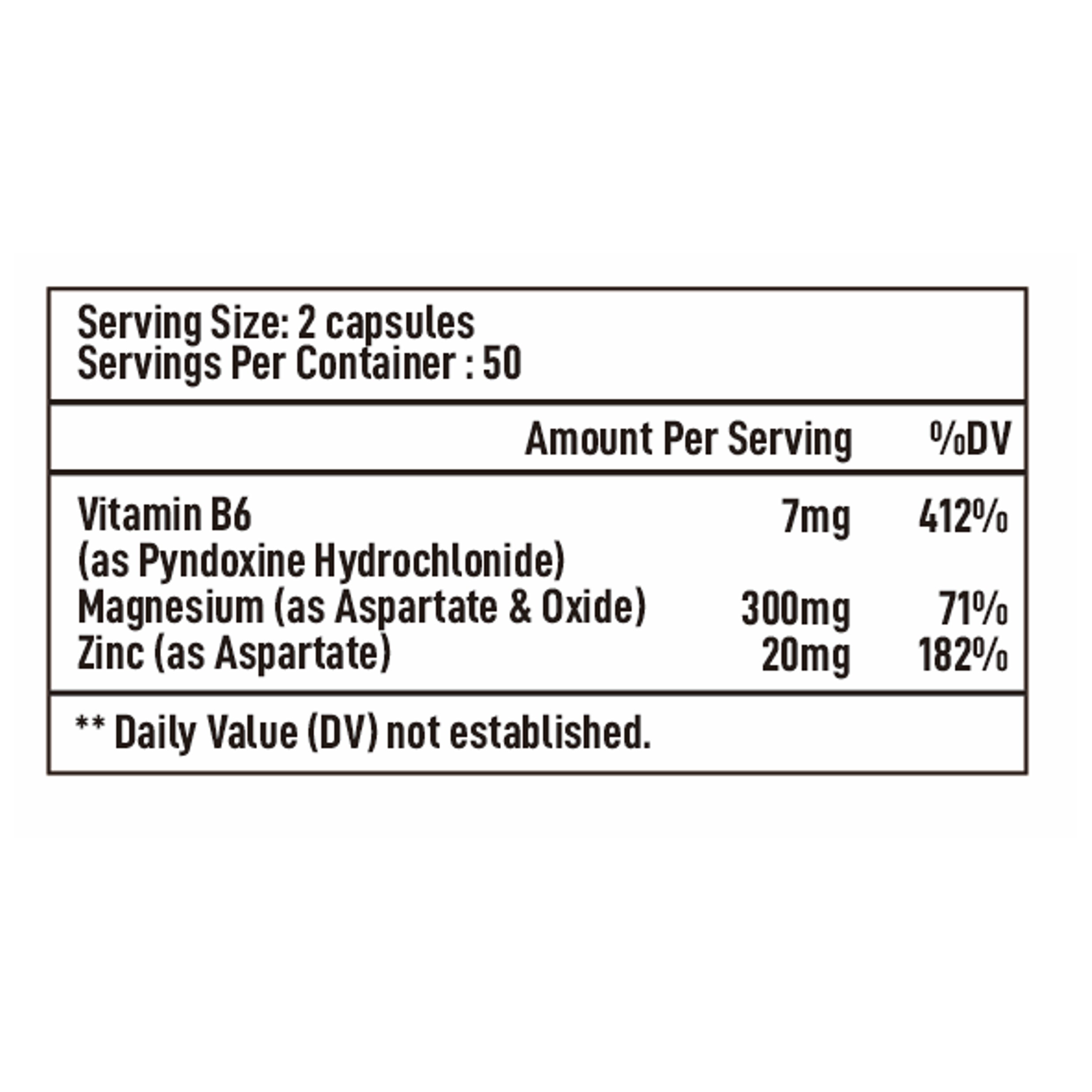 دوز استاندارد در بسیاری از مکملها: حدود ۳۰ میلیگرم زینک + ۴۵۰ میلیگرم منیزیم + ۱۰–۱۱ میلیگرم ویتامین B6.