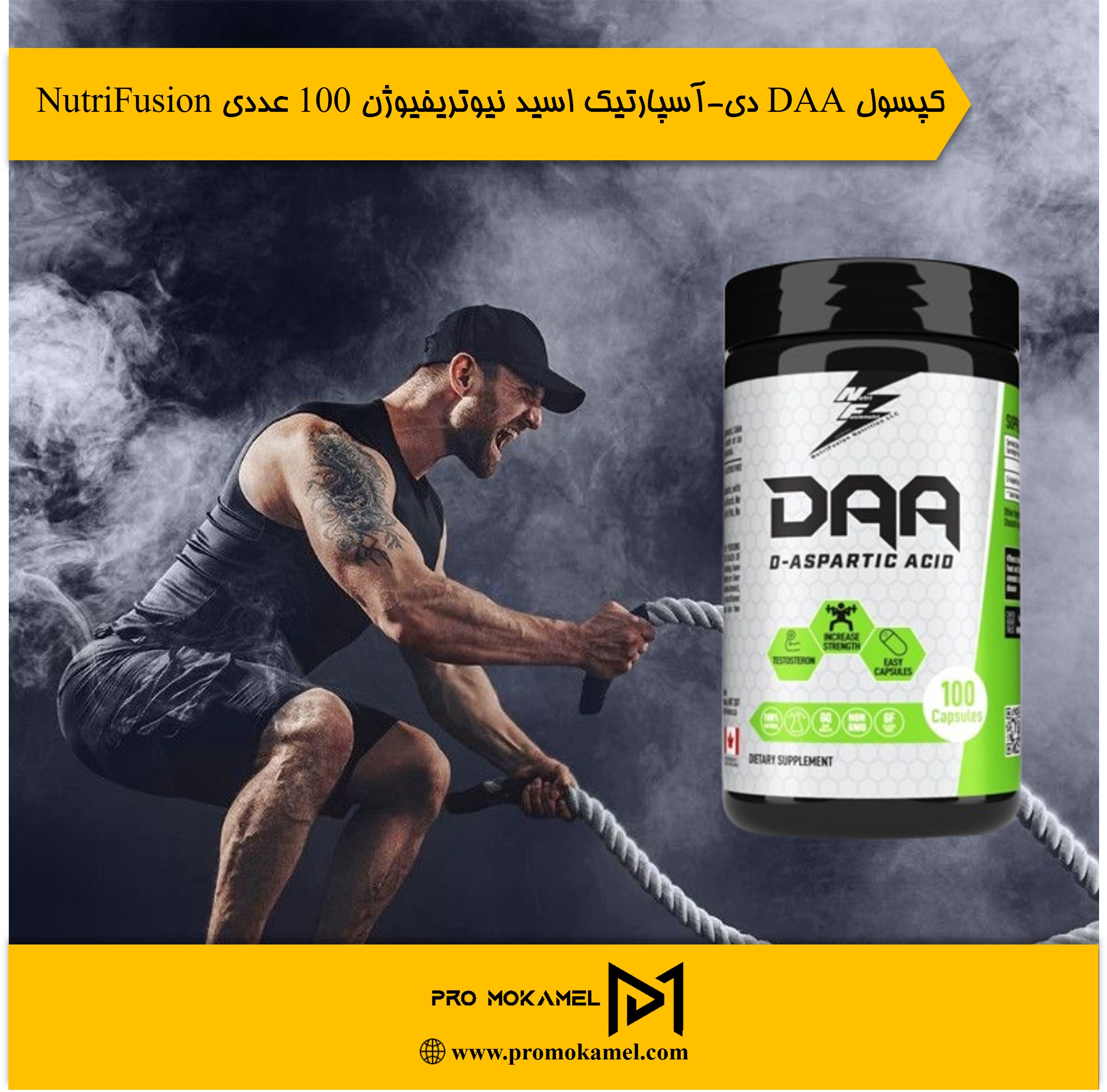 کپسول DAA دی-آسپارتیک اسید نیوتریفیوژن 100 عددی NutriFusion یا همان DAA یکی از محبوبترین مکملهای تقویت هورمونهای مردانه و پشتیبان عملکرد ورزشی است. این مکمل توسط بسیاری از ورزشکاران، افراد با سطح انرژی پایین و کسانی که دنبال تقویت طبیعی عملکرد خود هستند استفاده میشود. فرم کپسولی این محصول مصرف را سادهتر، دقیقتر و مناسب افرادی میکند که با طعم و بافت پودر راحت نیستند.